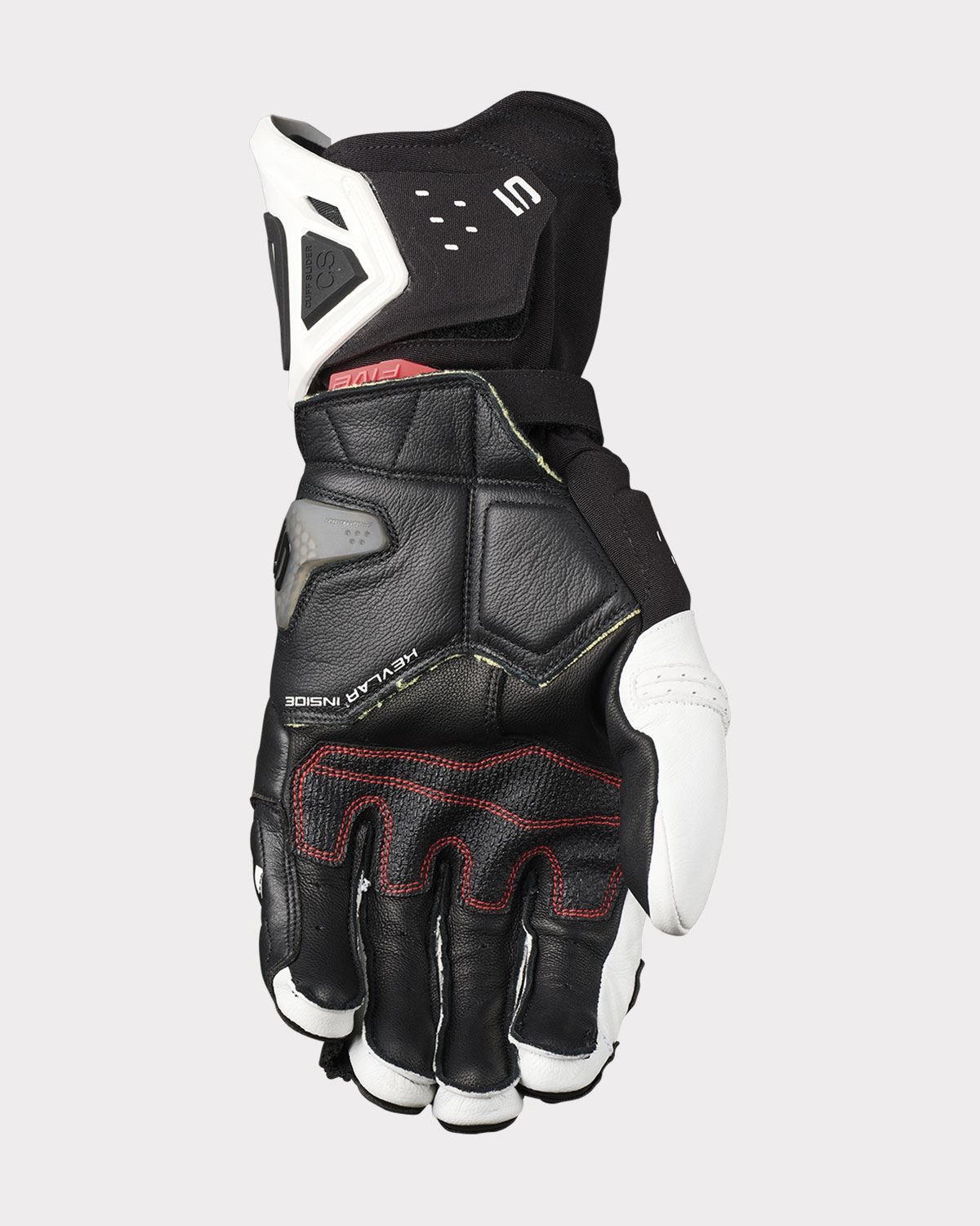 Le RFX2 EVO innove en adoptant sur l’avant-bras une manchette TPU à nids d’abeille, avec Cuff Slider™ intégré, totalement inédite que l’on retrouvera sur de futurs modèles haut de gamme… Et ce n’est pas le seul de ses attributs. Doublure interne Kevlar®, lien anti-torsion en cuir accordéon entre auriculaire et annulaire, double système de fermeture avec volet de protection anti-arrachement, structure supérieure en SyntechSkin™ et nylon stretch ultra-résistant, renfort palmaire en Hi-Res Grip™. Sans compter de nombreux renforts en mousse 3 ou 5 mm aux points névralgiques et de multiples accordéons d’aisance visant à maximiser la flexibilité du gant. Bref tout a été pensé pour une protection optimale, une précision de pilotage maximum et un confort premium à haute vitesse.