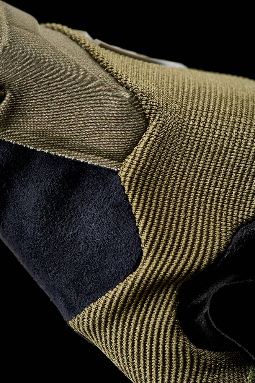 - Renforts paume, pouce, métacarpes : gel 3 mm